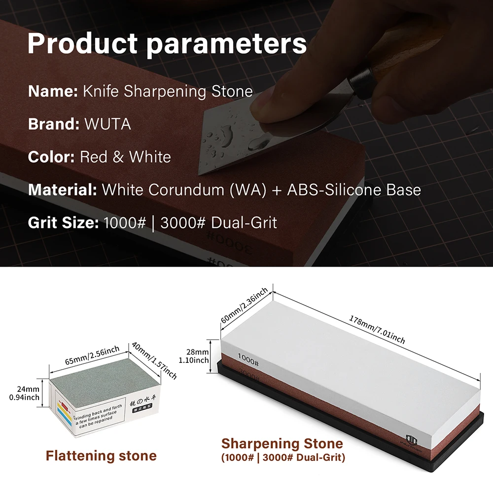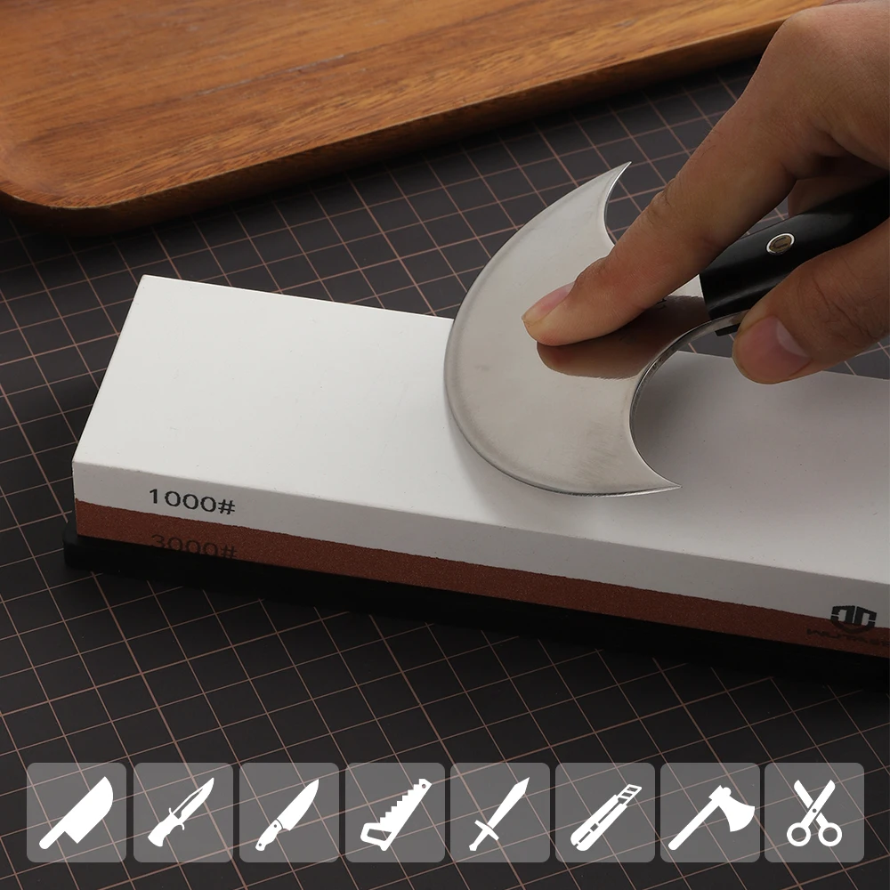 3.1000/3000 double-sided is available:Grit 1000# is used for sharpening knife blade.Grit 3000# is used for polishing knife blade. Use it ,you can polish the tool to a mirror effect.