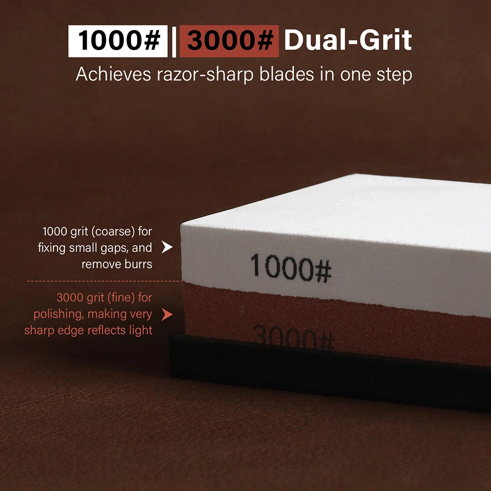 1 Piece Dual Sided Whetstone (Including 3 Pieces Silicone Base)