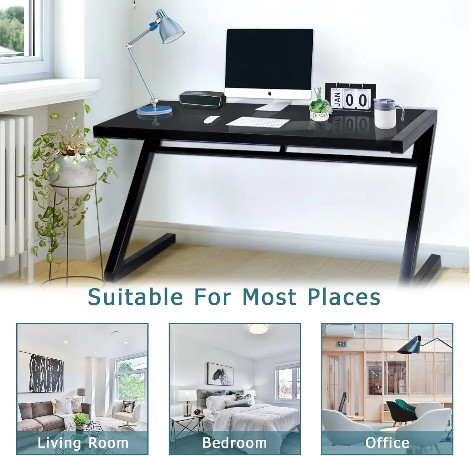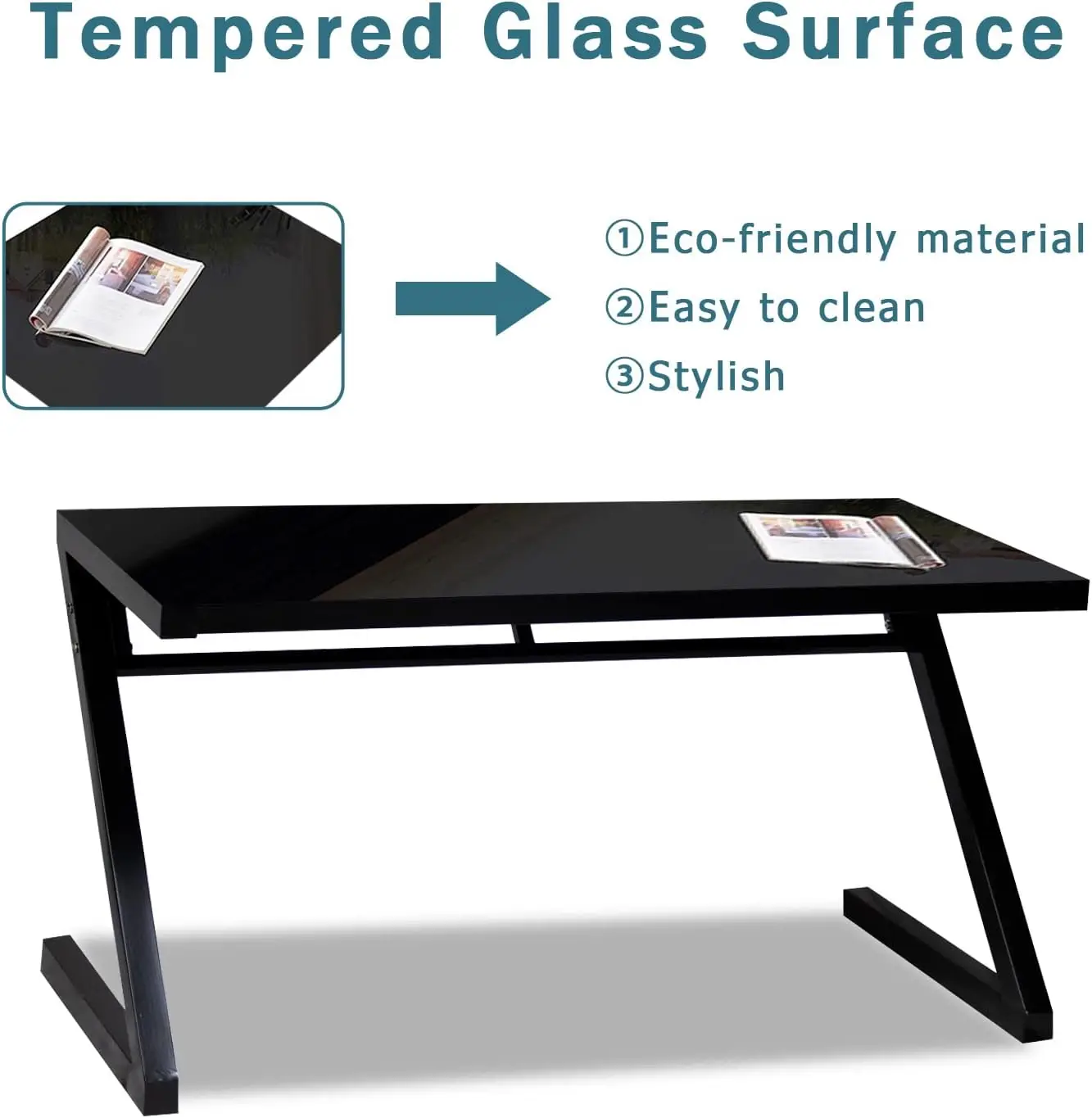 - Spacious Modern Industrious Black Tempering glass surface Desk. Conveniently unique design includes USB Accessory Attributes. Professional Office Desk is ideal for home,office, and student dorms.