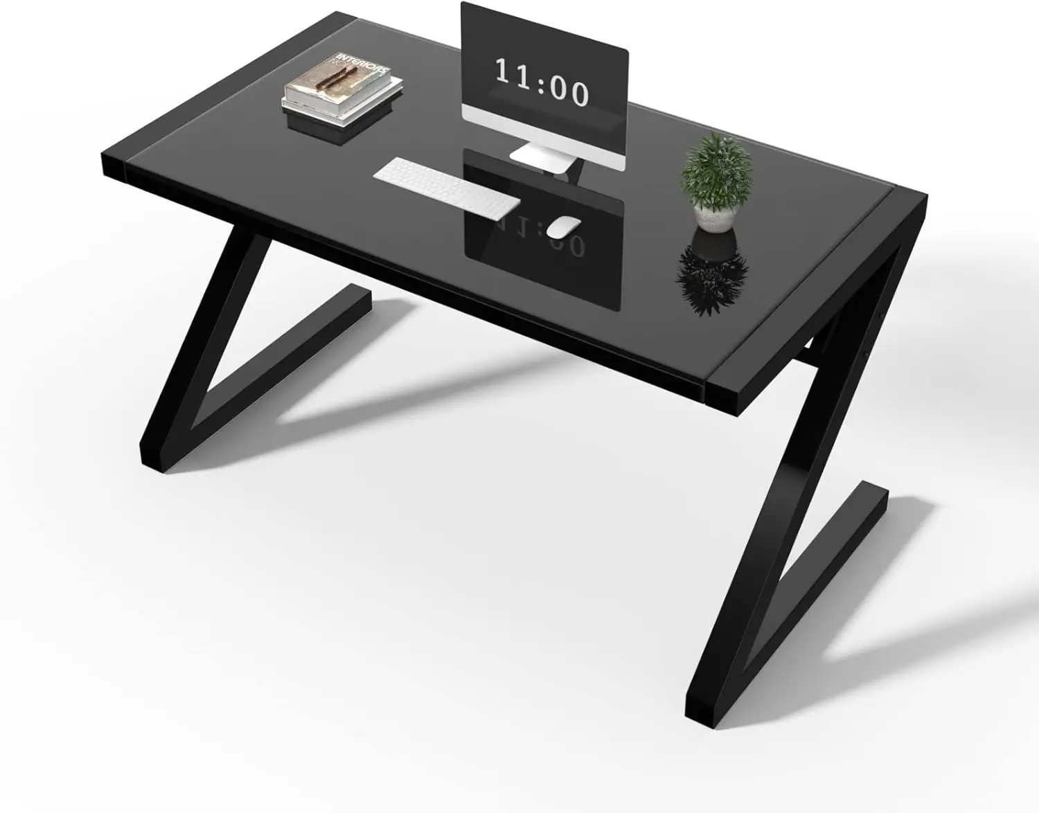 - MODEL: This desktop is conveniently designed to neatly adjust USB cables cords | Z shape base gives you work space a stylishly modern design | Includes durable leg pad protection to keep tour floors scratch free | Straight edge desk is specifically designed to show professionalization. Created with sturdy rectangular legs & a large flat polish tempered glass surface